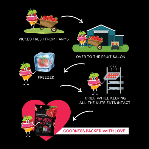 Freshlicious is a brand Born from a simple question – how could a fruit grown far in farms be enjoyed after harvest season? The answer was found by slicing and freeze-drying it into a surprisingly crunchy snack.